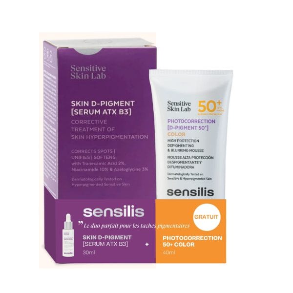 - SENSILIS PHOTOCORRECTION D-PIGMENT COLOR SPF50+ 40ML OFFERT : est la première mousse teintée SPF50+ qui protège contre les UVA, UVB et la lumière bleue et corrige et estompe les taches des peaux sensibles hyperpigmentées de tout âge.